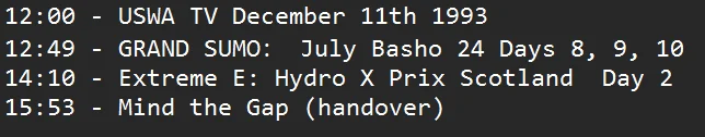 OTH SportzDrone11/08/2024 12:00 PMOh the Humanities8th August 2024 at 12:28 PM more pro-wrestling, sumo wrestling and extreme E racing OTHTVOTHII
